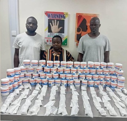 Operatives of the National Drug Law Enforcement Agency (NDLEA) at the Murtala Muhammed International Airport (MMIA), Ikeja ,Lagos have uncovered a total of 70 parcels of cocaine factory packed in walls of cocoa butter formula body cream containers heading to London, United Kingdom while three suspects were arrested in series of follow-up operations across Lagos.